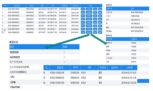 此功能可很方便對(duì)多有 OTDR 測(cè)量設(shè)備進(jìn)行在線管理,只要測(cè)量設(shè)備連接到網(wǎng)絡(luò)上,云存儲(chǔ)就可以實(shí)時(shí)查看到每個(gè)測(cè)量設(shè)備的序列號(hào)、軟件版本、選件有哪些、維修日期、維修次數(shù)、故障信息等都可以查看到。